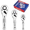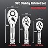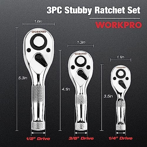 WORKPRO 3-Piece Stubby Ratchet Set, Quick Release Reversible, 1/4", 3/8", 1/2" Drive Mini Ratchet Handles, Chrome Alloy Made, CR-MO Head, 72-Tooth, Full Polished