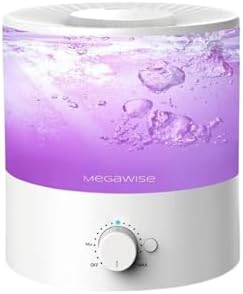 MEGAWISE Sleek 2L Humdifier for Bedroom, Baby,Plant, 24dB Cool Mist Ultrasonic humidifiers, Colorful Night Light, Top-Refill 1 Gal Essential Oil Diffuser, Auto Shut Off