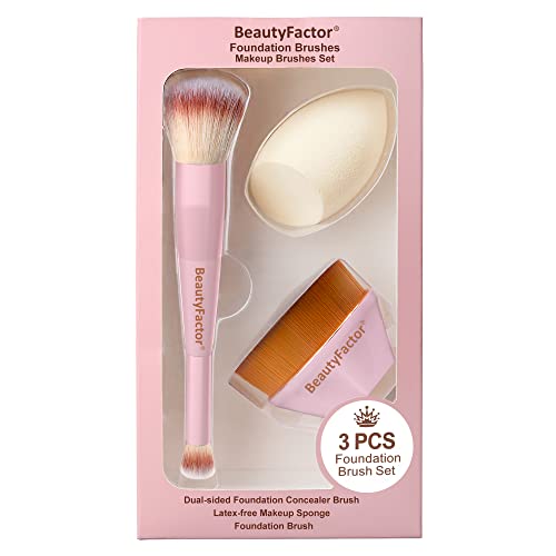- 3-Piece Set:1 x hexagonal foundation brush, 1 x double-ended foundation brush, and 1 x beauty makeup sponge.Each tool is designed for maximum performance, ensuring you achieve a professional, ethical finish with every application