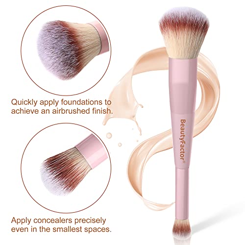 - Dual-Purpose Precision: Our Dual-sided makeup blending brush combines convenience and precision.The large end effortlessly applies foundation for an airbrushed look,while the micro-end delivers precise concealer application even in hard-to-reach areas