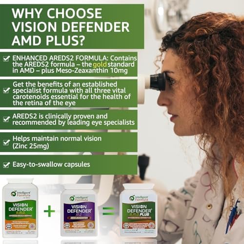 - ENHANCED AREDS2 FORMULA, ENHANCED EYE HEALTH CARE - This special eye supplement provides the EXACT gold standard AREDS2 formula (Lutein 10mg, Zeaxanthin 2mg, Vitamin C 500mg, Vitamin E 400IU, Zinc 25mg, Copper 2mg), PLUS the added power of Meso-Zeaxanthin 10mg. By adding the ‘missing’ ingredient Meso-Zeaxanthin to the AREDS2 formula, Vision Defender PLUS provides all the carotenoids found in the eye, thus 'completing' a well established formula and bringing superior eye health benefits.