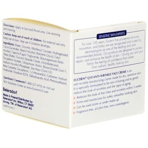 • ENRICHED FACE CREAM: This Eucerin Anti Wrinkle Face Cream is enriched with Vitamin E, Beta-Carotene, and Coenzyme Q10