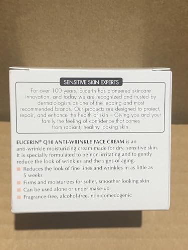 Eucerin Q10 Anti-Wrinkle Sensitive Skin creme is a moisturizing creme made for dry, sensitive skin. It is specially formulated to be non-irritating and to gently reduce the look of wrinkles and the signs of aging.