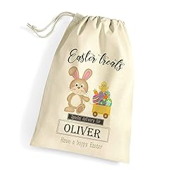 - 🌻 Personalized Easter Egg Hunt Sack with colorful rabbit and bunny design for present stocking and it can have any name on it. The sack itself is a heavy high quality natural cotton drawstring bag measuring 75 cm x 49 cm / 29.5 inch x 19.3 inch; 38 litres plenty of space for all your eggs and presents.🌻 To send name for printing please press "Customize Now" button. In this step you will be able to add sack receiver name or initials. Please do not add more than three names. The text will be adjusted according to text font which you can see in the listing images. If you have any questions or we can be of assistance, please don't hesitate to ask.🌻 A pleasant special surprise for your children and friends. You can present this bag empty for an egg hunt on Easter morning or fill it with sweets and small gifts. After Easter celebration, you can also use the bag for other purposes, for example, to storing belongings and toys because drawstring protect from leaking out and also to prevent dust form coming in.