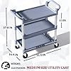 Plastic Utility Carts with Wheels, 3-Tier Medium Size Restaurant Food Cart, Heavy Duty 510lbs Capacity Rolling Service Cart w/Hammer for Commercial, Kitchen, Office (Lockable Wheels, M-Grey)