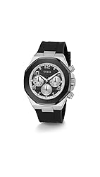 Black Stainless Steel Case: This stylish watch features a durable black stainless steel case that is water resistant up to 100 meters Quartz Movement: The precise Japanese quartz movement ensures accurate timekeeping Black Dial with Crystal: The sleek black dial has a crystal window that protects the dial and makes it easy to read Two-Tone Band: The band is made of flexible silicone that stretches to fit most wrist sizes for a comfortable fit Buckle Closure: The watch has a tang buckle closure that provides a secure and customized fit