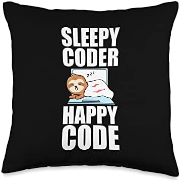 Software Developer Sleepy Coder Happy Code Throw Pillow