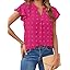MEROKEETY Women 2025 Summer V Neck Ruffle Short Sleeve Blouse Swiss Dot Flowy Shirt Tunic Top