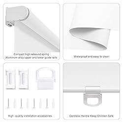 - Roller shades blackout blinds are a stylish way to reduce glare and furniture-fading ray. Choose them when you’re looking for style limited privacy. They will keep your room cool and comfortable without feeling boxed in. Example of choosing the right size: To make sure to cover the entire window, outside mount roller shades Blackout need to be 4 inches wider than windows wide. If your windows width is 30", order size 34" would be okay for outside mount;If your windows are 30" wide, order 30" or slightly less for internal installation. Don't worry window blinds height,it can adjust from 0" to 72". (Pls Note):Fabric width will be 1" narrower than the size of the shade. Features: Roller shades blackout ability to cut the glare makes them the ideal choice for media rooms, studies or any sun-facing room where light control is desired. These window treatments protect furniture from harmful ultraviolet (UV) rays, diffuse light and help control heat gain. Cordless Lift: This popular option provides a hidden control system that eliminates the lift cord on your roller shades blackout and enables them to be easily raised or lowered with the touch of a finger. 100% Opacity: UV Blockage 100% Blackout shades for complete privacy. Perfect for media room, studio, office, living room,glass door bathroom,bedroom.