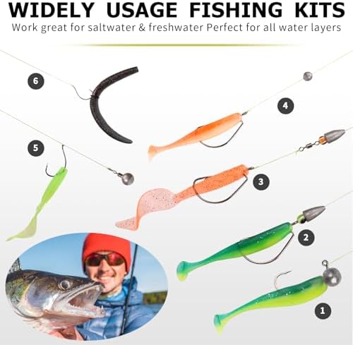 • Widely Usage Fishing Tackle Set - Excellent easy-to-pack stowaway case for all of your lures and fishing tools. The variety and number of accessories allow you to combine your own fishing rig with confidence. Such as Split Shot Rig, Jig Head Rig, Texas Rig, Carolina rig, Float Rig, Three Way Rig, etc. Unleash your imagination to make different combinations. Complete assortment of fishing accessories kit is suitable for any angler in any season in any water conditions!