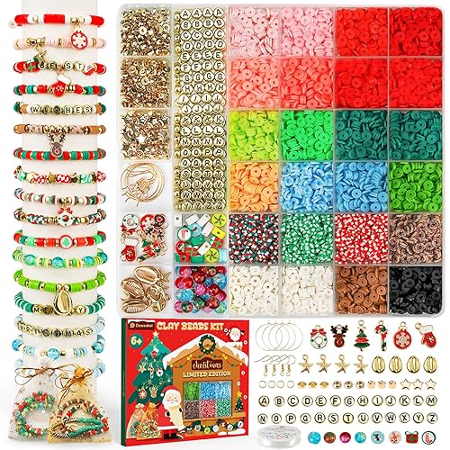 Dowsabel Clay Beads Bracelet Making Kit for Beginner, 5000 Pcs Preppy Polymer Clay Beads with Charms Kit for Jewelry Making, DIY Arts and Crafts Birthday Gifts Toys for Kids Age 6-13