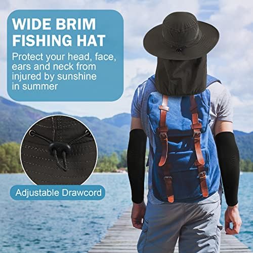 6 Pcs Fishing Hat with Neck Flap and 6 Pcs Arm Sleeves Outdoor UPF 50+ Sun Protection Caps for Men Mesh Wide Brim Hats for Fishing Hiking Garden(6 Colors Multicolored)