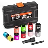 Flip & Half Size -- 10 IN 1 wheel nut socket set includes 5pc Metric flip socket: 17/17.5mm, 18.5/19.5mm, 19/21mm, 21*21.5mm, 22*22.5mm sizes, 1pc 3” extension bar, and 1pc knock-out pin, half size can quickly remove some expanded, rusty nuts Non-Marring Sleeve -- Each socket has a protective sleeve that is designed to prevent damage to aluminum wheels, the protective sleeve is removable, and if the lug gap on some modified vehicles is too small, you can remove the protective sleeve to work Thin Wall Design -- This thin wall wheel socket set is less than 1mm in diameter of an ordinary socket for access in tight work areas 1/2" Drive -- Standard 6-point hex ends allow for standard lug nut installation and removal. the radiused corners prevent fastener round-off by applying force to the flat sides of a lug nut, rather than its corners Meet or exceed ANSI standards -- each lug nut socket is made of high-strength chrome molybdenum steel, black phosphate finish for enhanced durability and corrosion resistance