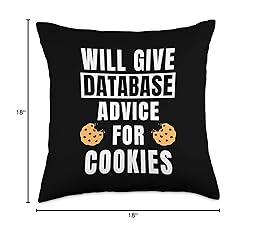 100% Polyester You are a proud database administrator and you love eating cookies? Then this funny database admin quote is perfect for you while programming SQL query. Will Give Database Advice For Cookies. Funny database architect outfit for cookie loving programmer with a sense of humor. 100% spun-polyester fabric Double-sided print Filled with 100% polyester and sewn closed Individually cut and sewn by hand Spot clean/dry clean only