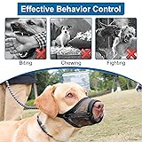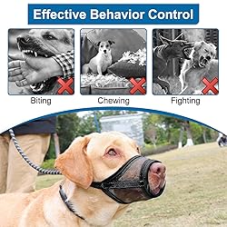 Size L(Cir: 7"-8¾") Dog Muzzle for Large Dogs: This soft muzzle for large sized dog is suitable for Beagle, Corgi, etc.(reference only), but not for short snout dogs like Shih Tzu, and flat-faced dogs like Pug. Note: ①Measure your dog's snout circumference and length as shown in the size chart or the video before choosing the size(The snout circumference is the key to choose sizes). ②Please DON'T choose size without mesuring! ③If the snout circumference is between sizes, SIZE UP! Helping Your Dog Adjust to a Muzzle: All dogs initially dislike wearing a muzzle. They may paw at it or try to remove it. However, by following the fitting steps video and instruction, and using treats to guide your dog multiple times a day, you can help them associate the muzzle for dogs with positive experiences. This will allow them to accept it without stress and reduce resistance. As dog owners, work through behavioral issues instead of using the muzzle to cover them up Dedicated to Providing Assistance: Recognizing the importance of finding the ideal dog mouth guard for your dog, assistance is ready if you have any issues or concerns. Your satisfaction and your dog's comfort stay top priorities. Great Helper in Your Life: When used in the proper size, this mesh dog muzzle helps correct bad behaviors, like biting, chewing, snapping at visitors, destroying furniture, etc. This mesh muzzle for dogs is ideal for grooming, vet visits, walks, nail trimming, travel, outings, and training. For safety, avoid prolonged wear and supervise your pet while the muzzle is on Ultra Ventilated Muzzle Ensures Normal Activities: Made of breathable and lightweight mesh material, this puppy muzzle ensures your dog feels comfortable and burden-free during outdoor walks. This dog muzzle for grooming provides enough space for your dog to breathe, pant, drink water, sleep, and play normally Adjustable Strap for a Secure Fit: This dog mouth cover features an adjustable neck strap, ensuring a secure and comfortable fit that stays in place even when your dog is running or playing. The quick-release buckle makes it easy for you to take it on and off Gentle Comfort for Your Dog: This gentle and soft dog muzzle is designed to be comfortable and kind to your dog, ensuring a snug fit without irritation. This soft muzzle for dogs provides a soothing, enjoyable experience, allowing you to spend quality time with your pet without discomfort.