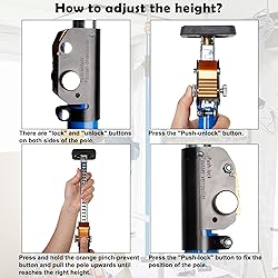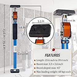 STURDY: This adjustable support pole is made of heavy-duty ABS plastic and high-density metal with blue oxide finish for optimal durability. ADJUSTABLE: This 3rd hand support system can adjust height from 24 inch to 40 inch, includes different levels for easy height adjustment to meet various purposes. FREE YOUR HANDS: This extension pole secures building materials to keep your hands free, it offers you a 3rd hand when you were working alone. MULTIPLE USAGE: This quick support pole provide support for reinforce stairs, porches, weak floors or decks, is great for installing upper cabinets, drywall, crown moldings, light fixtures and soon. Load capacity of this quick support rod: 130 lb (60 kg) each. Non-slip pads can meet various working conditions..