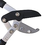 CHOPS THROUGH ⌀ 2” BRANCHES effortlessly. This 30” lopper will allow for fast removal of dry and woody growth and is the ideal tool for preparatory cuts and cut-to-length work. The lopper is designed and built for professional-grade applications and makes cutting dramatically easy through extra leverage and compound action power! SHARP BLADE WITH STRONG ANVIL. Anvil pruners have one straight blade that cuts as it closes onto a flat edge or ‘anvil’ - think about it like a knife on a chopping board. This makes an anvil pruner an excellent tool for trimming back live wood before making a final, clean cut with bypass scissors. Suitable for harder and dryer wood. Replacement cutting blades available. COMFORT GRIP AND EXTRA LEVERAGE. This 30” model will allow you to work with some extra leverage and to efficiently navigate around higher limbs. It locks on various lengths in between. The ergonomic handles are designed for optimal grip and the anti-shock rubberized grips on the handles provide extra comfort. COMPOUND ACTION SYSTEM: The compound lever system with multiple pivot points and moving parts increases the force applied to the blades. The compound action blade has multiple moving parts which multiply the force applied to the blades 3 times! ORDER WITH CONFIDENCE. We at TABOR TOOLS stand behind our products. Please don’t hesitate to contact us for support, questions about our products, or spare parts you might need.