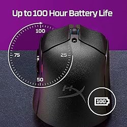 Up to 100 hours of battery life: The Pulsefire Haste 2 Wireless gets up to 100 hours of battery life on a full charge, so you’ll spend more time racking up wins, and less time charging on the sidelines. Easier mouse movement for easier wins: Game at the speed of ultra-light with the Pulsefire Haste 2. Even with a solid upper shell, it weighs just 61g., designed to help you move quicker, game better, and feel less fatigue. Dual wireless connectivity modes: Use the dongle to connect via 2.4GHz wireless or use Bluetooth Mode to connect to compatible devices. Incredibly precise HyperX 26K Sensor: Say hello to our HyperX 26K Sensor. It’s capable of up to 26,000 DPI natively and can track at speeds up to 650 IPS. With that level of precision, making clutch plays has never been easier. Durable, satisfying HyperX Switches: Rated for up to 100 million clicks, HyperX mouse switches provide solid tactile and audible feedback on every satisfying click. Virgin PTFE skates and custom HyperX Grips: Have ultimate confidence in your control with the smooth effortless glide of 100 percent virgin-grade PTFE skates, and 4 pieces of custom, residue-free HyperX grips to help provide a secure hold. Easily swap to wired mode: If you need to charge while you play, or just want the fallback option of having a physical connection to your mouse, the included USB-C to USB-A cable has got you covered. Customizable with HyperX NGENUITY Software: Personalize your lighting, set up macros and binds for the Pulsefire Haste 2 Wireless’s 6 programmable buttons, and customize DPI settings with easy-to-use HyperX NGENUITY Software.
