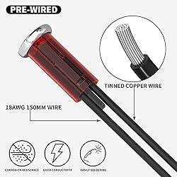 Type: 12 volt LED indicator light, red led illuminated 12v indicator light. Easy to Install: The mounting hole size for this led indicator light 12v is 1/2" (0.5"/12.5mm). In addition, this indicator light is snap-in design, which is easy to install and replace. Pre-wired: The pilot light is pre-wired design, the wire guage is 18awg, and the wire length is about 150mm. Application: These industrial electrical indicator lights can be used under a wider application range, suitable for car, truck, boat, diy appliances, etc. What you get: 2 x 12V led indicator light. Feel free to get in touch with us if confused.