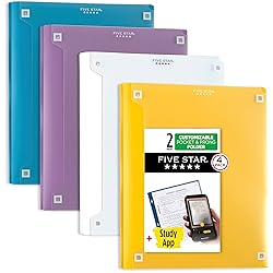 - LASTS ALL YEAR. GUARANTEED! This Five Star folder has a clear view plastic cover, so you can insert your own pictures or a syllabus into the plastic cover on the front. Scan, study and organize your notes with the Five Star Study App. The clear front pocket on the folder makes any paper compatible with the Five Star Study App, so you can access your notes, handouts and more from any device. The pockets and prongs help provide secure storage for 8-1/2" x 11" loose sheets and handouts. The durable customizable cover helps protect your contents from damage. 4 pack available in White, Amethyst Purple, Harvest Yellow and Tidewater Blue. Guarantee is valid for one year from purchase date. Does not cover misuse.