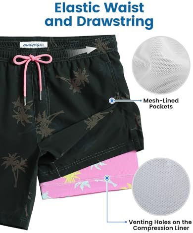 maamgic Mens Swim Trunks with Compression Liner 7 Inch Inseam Mens Bathing Suit Quick Dry Swimming Trunks Swimsuit