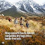 Dry bag sling strap converts Sea to Summit compatible dry bags into a hands-free over-the-shoulder or crossbody tote (dry bag sold separately) Adjustable strap has a maximum length of 38 inches and features a 3D mesh shoulder pad for even weight distribution, and a nylon webbing strap with a ladderlock buckle for easy adjustment Sling is compatible with Sea to Summit Big River, eVac, Lightweight, and View Dry Bags featuring a base lash point and a D-ring at the closure (not compatible with pre-2023 styles) Easy to attach and remove from dry bags, the rotating snap hook prevents strap twisting, and the T-bar creates a secure attachment at the base of the bag; perfect for carrying loads up to 33 pounds Sling measures 37.8 x 2.7 x 1.2 inches and weighs 0.14 pounds; dry bag sold separately, check compatibility (not compatible with pre-2023 styles without the base lash point and D-ring)
