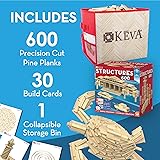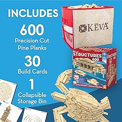 MindWare KEVA Structures 600 Plank Wooden Building Blocks Set - Free-Form 3D Structure Building Set for Kids – Includes 600 Pine KEVA Planks, 30 Idea Cards and Collapsible Storage Bin - Ages 5 and Up Wooden Building Toys That Teach: Builders gain first-hand experience with balance, leverage, geometry and the principles of physics with these STEM planks that make a great addition to STEM toys and learning resources Architecture for Kids Set: Build an entire city or an enormous sky scraper; create castles complete with stairs and turrets; construct a ball run with slides, black holes, bounce plates and more; the sky’s the limit with these KEVA blocks Quality Plank Building Block Set: The large wooden blocks in this planks building toy not only feature beautiful maple wood grain but are tough, durable and stack perfectly time after time No Hassle Premium KEVA Blocks: With no glue or connectors needed, these wooden building planks are ready to play right out of the box; simply unpack these wooden planks for building and get started