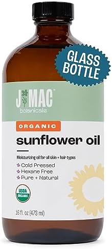 J MAC BOTANICALS Organic Sunflower Oil (16 oz Glass Bottle) USDA Organic Certified 100% Pure Carrier Oil, Moisturizing & Nourishing for Skin, Face, Hair
