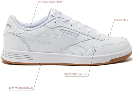 Step into style and comfort with the Reebok Court Advance women's tennis shoes. Crafted with a premium leather upper, these casual sneakers for women ensure a snug fit and lasting durability. Innovative DMX Microbubbles in the midsole provide responsive cushioning for all-day wear in these comfortable shoes for women. The OrthoLite sockliner adds an extra layer of support, making these womens walking sneakers your go-to choice for any occasion. The lace closure ensures our womens white tennis shoes fit securely, while perforations on the toe box enhance breathability. Reebok is guided by the fundamental belief that LIFE IS NOT A SPECTATOR SPORT. No matter who you are, where you came from, how you move, or what you look like – everyone deserves to move freely.