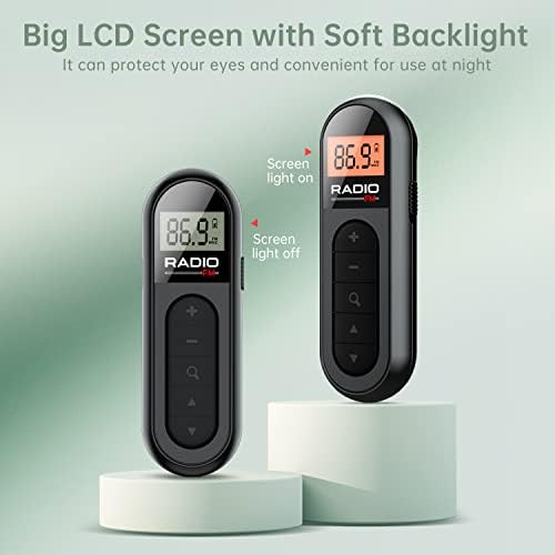 Radio FM recargable portátil de bolsillo con mejor recepción, sintonización digital LCD con retroiluminación, sonido estéreo, clip para cinturón para trotar, caminar (negro)…