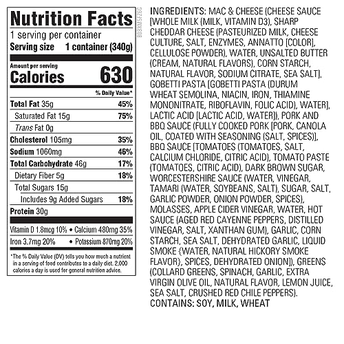 Amazon Kitchen, Pulled Pork with BBQ Sauce & Mac and Cheese, Single Serve Meal, 12 Oz