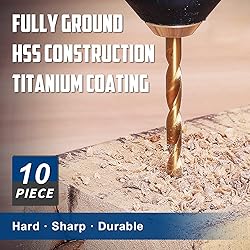 - COMOWARE Titanium Twist Drill Bit Set - 10 Pcs 1/4" Hex Shank High Speed Steel for Wood Plastic Aluminum Alloy