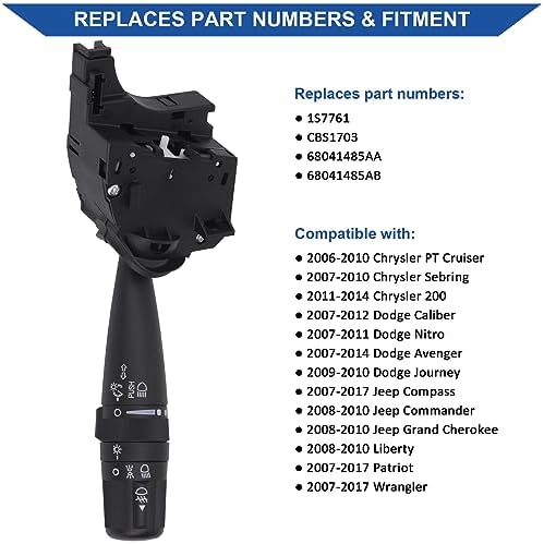 Obaee Multi-Function Turn Signal Switch Compatible with Chrysler 200 PT Cruiser Sebring 2006-2014, Dodge Caliber Journey Nitro 2007-2014 / Fog Light Control, Headlight Dimmer Replacement OEM CBS-1703