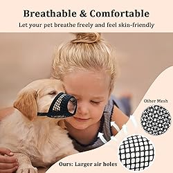 Multiple Size Options: Mayerzon mesh muzzle for dogs is available in 7 sizes. The XXS size (suitable for snout circumferences between 4’’-5’’) is perfect for breeds like Chihuahua, Yorkshire Terrier, but not recommended for short-snouted dogs like Shih Tzu, Pit Bull, Boxer, etc Ultra-breathable Mesh Muzzle: Made of premium mesh, our mesh dog muzzle is soft but still resistant and long-lasting. The newly upgraded ultra-breathable mesh design allows your dogs to breathe freely and feel more comfortable while wearing it. Extra soft padding can protect the front of your dog’s nose from rubbing and is more skin-friendly Easy to Use & Carry: Our soft muzzle for dogs also features an adjustable neck strap that secures it in place. The easy snap-on buckle makes the mussels for dogs easier to put on/ take off. If in a proper fit, this muzzle for medium sized dog is hard to remove by dogs. In addition, the mesh muzzle is very lightweight and highly packable - it can be folded and stored in a pocket easily Safe Guard for Dogs: The soft dog muzzle is a secure and comfortable temporary muzzling solution for your pet. Since it is a soft muzzle, it is convenient for times when your pet may feel anxious or afraid during walking, training, vet visits, grooming, trimming nails, or meeting strangers. This puppy muzzle is also safe for correcting your dog’s bad habits such as biting, chewing, and fighting while it allows panting, drinking and being fed Attention: Sizing does NOT directly correspond to your pet's breed or weight. Please measure before buying. When you receive your soft muzzle for large dog, make sure that it is large enough to allow your dog to pant and that it is secure while wearing. If it is the first time for your dog to wear a dog mouth cover, please introduce it to your dog with more treats, and they will be more receptive Hassle-available Service: If you have any questions about our dog muzzles for small dogs, feel happy to tell us so we can help you solve the problem. Just buy with confidence! Our quality build dog mussel will make it easier to take care of your doggy and ultimately makes every dogs a happier & contented pet over the long haul