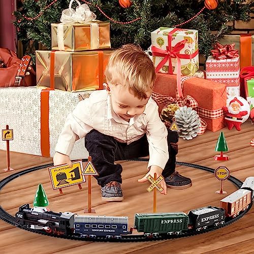 - Gran Juguete de Tren para Muchas Ocasiones - Comience a montar su forma favorita de ferrocarril bajo el árbol de Navidad con su familia, luego coloque su conjunto de tren modelo en la pista. ¡Es hora de divertirse! Este maravilloso juguete de pista de carreras será el buen juguete de su hijo para Navidad, Halloween, Año Nuevo, Acción de Gracias, cumpleaños, etc., adecuado para niños y niñas de 3 a 8 años.