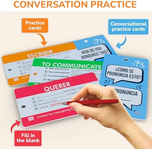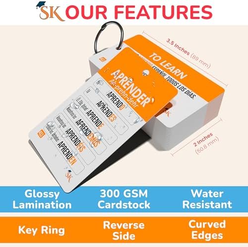 - Aprendizaje en Camino: Construidas para la conveniencia, el diseño compacto con llavero hace que estas tarjetas flash de verbos españoles sean fáciles de llevar a cualquier parte. Ya sea que estés viajando, en el camino o estudiando entre clases, estas tarjetas Inglés-Español siempre están al alcance.