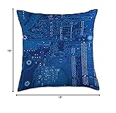 100% Polyester Photograph background all-over print of blue digital computer motherboard circuit board microchip. VISIT THE STORE TO SEE THIS DESIGN ON OTHER PRODUCTS. Perfect present idea for computer enthusiasts, gamers, tech geeks, web developers, software engineers, graphic designers, programmers, PC nerds and anyone who loves technology. Available online only. 100% spun-polyester fabric Double-sided print Filled with 100% polyester and sewn closed Individually cut and sewn by hand Spot clean/dry clean only