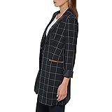 - This Tommy Hilfiger Women's Blazer is a longline topper jacket in a flattering fit, with a one button closure, shoulder pads, a notched collar, slit pockets at hips, in a windowpane printed fabric