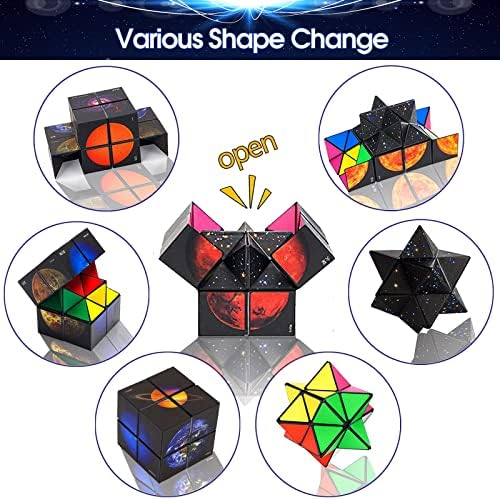 - 2 in 1 Magic Cube Fidget Toy: These cool and colorful innovative cubes can transform into two separate fidget blocks or fold into cube, rectangle, or star shapes, enjoy endless fun switching between shapes over and over again