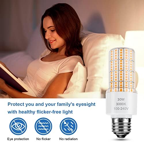 Led Light Bulb Equivalent 250w 2pcs Super Bright Led Bulbs, 3750 Lumen 3000k Warm Daylight White 30w Waterproof Led Corn Light Bulb E26/E27 Medium Base Light Bulb for Outdoor Indoor Garage Backyard