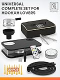 HOOKAHS COMPLETE SET - Complete hookahs complete set with acrylic base, silicone hose, silicone hookah bowl, LED light, charcoal holder & bag. Everything you need in one stylish kit. UNIQUE HMD DESIGN – Fits 3 Hookah Coals - Custom-designed heat management device holds up to 3×25mm coals for longer, more consistent sessions. Enjoy optimal heat control and bold flavor every time. PERFECT FOR TRAVEL HOOKAH MACHINE – Lightweight travel hookah, durable, and packed in a compact case, this portable hookah set is ideal for travel, outdoor use, or home sessions with friends. TRAVEL BAG - The hookah bag is made of strong material that you can use as storage for your book hookah, hookah charcoal, shisha, and other hookah accessories. EASY TO CLEAN - Easy To Clean As You Can Completely Disassemble It. No Rusty Parts. Only High Quality Materials In Our Bag Hookah Kit. Complete Smooth Acrylic Hookah Smoking Bowl. Mini Hookah Sets MULTICOLOR LED LIGHT - There is LED Light in the package (3 x AAA batteries NOT INCLUDED). The large hookah set with bag has acrylic transparent walls, so it can create a beautiful and romantic atmosphere when you use it. The led light has a color-changing system with 12 different colors and 4 color-changing modes, which brings great enjoyment to smoking. DETACHABLE HOSE FOR EASY CLEANING – The premium silicone hose is flexible, detachable, and washable, allowing for hassle-free cleaning after every session. GERMAN BRAND. 60 DAYS FREE RETURNS - We provide 24/7 professional English-speaking support. Don’t like your new hookahs, black smoke hookah, big hookah, tall hookah, narguile, or any other acrylic hookah set? No problem at all. You have 60 days to return or replace your hookah set.