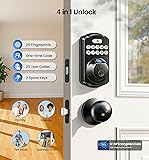 Veise Fingerprint Door Lock with 2 Knobs - Keyless Entry Door Lock with Handle, Electronic Keypad Deadbolt, Smart Front Handle Set, Auto-Locking, Waterproof, Easy Installation, Matte Black