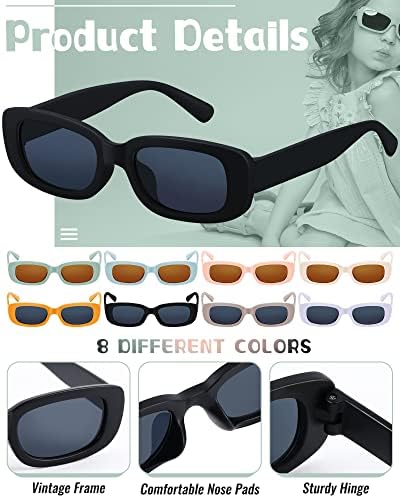 Xuhal 8 Pairs Kids Retro Rectangle Sunglasses Polarized Sunglasses Children Girls Boys Y2K Trendy Eyewear Square Frame Glasses for Summer Beach Age 3-10 Toddlers