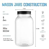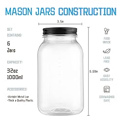 novelinks 32 oz Clear Plastic Jars with Lids, 6 Pack Large Plastic Mason Jars with Lids 32oz, Reusable Quart Containers for Kitchen Organization (6 Pack,Black)