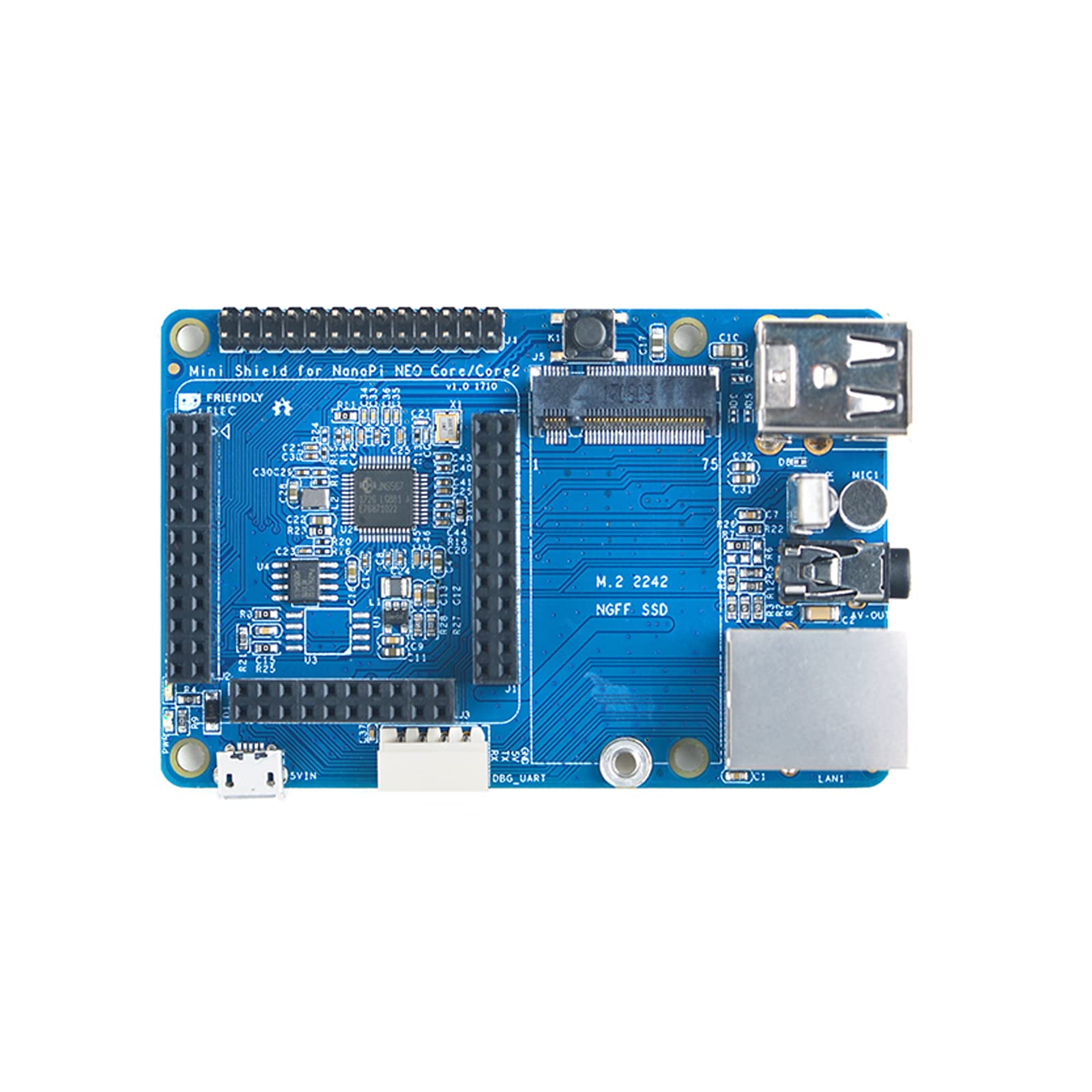 - 【SDK Carrier Board】The Mini Shield for NanoPi NEO Core/Core2 is a custom SDK carrier board developed for the NanoPi NEO Core and NanoPi NEO Core2. It has Ethernet port, serial debug port, audio, USB port and etc.