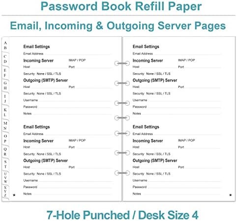 Password Book Refills - A-Z Password Notebook Refill Paper with Alphabetical Tabs, 120gsm White Paper, 7-Hole/Desk Size 4, 5.8" x 8.3"