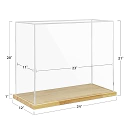 Clear Acrylic Display Case with Solid Butcherblock Base for Trophy, Collectibles, Assemble Cube Display Box Stand Dust Proof Protection Showcase for Action Figures Toys - by BenchPro