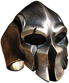 Classic Men's Ring Ring for Men, Silver Spartan Knight Helmet Ring Open Punk Rock Skull Ring, Vintage Brass Skull Bone Adjustable Ring, Hip Hop Halloween Biker Ring, Viking Skull Jewelry Gift for Men