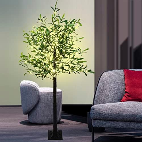 - [Olive Tree With LED Lights] - The leaf shape is natural, the texture is clear, and no care is required.The floor plant height is 6FT, It consists of a base,2* tree poles(The top tree pole has olive tree branches), 300 warm white LED lamp beads, 1*USB plug and 10FT extension cable with a switch.