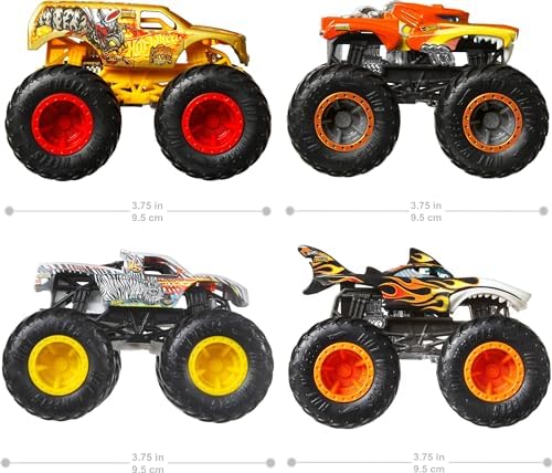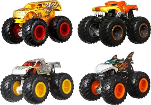 - Los 4-Paquetes Hot Wheels Monster Trucks son perfectos para chocar y destrozar desde el momento en que los sacas de la caja.